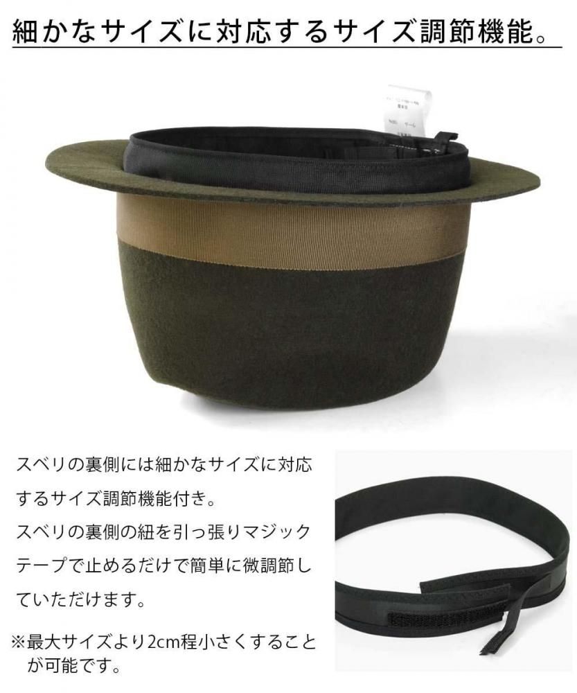 サイズはフリーサイズ(約57〜59cm)で、内側にサイズ調節機能付き。