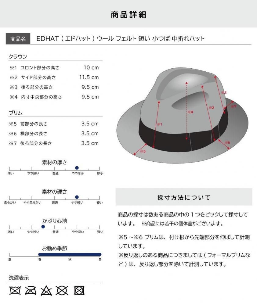 EDHAT(エドハット) ウール フェルト 短い 小つば フェルト 中折れハット