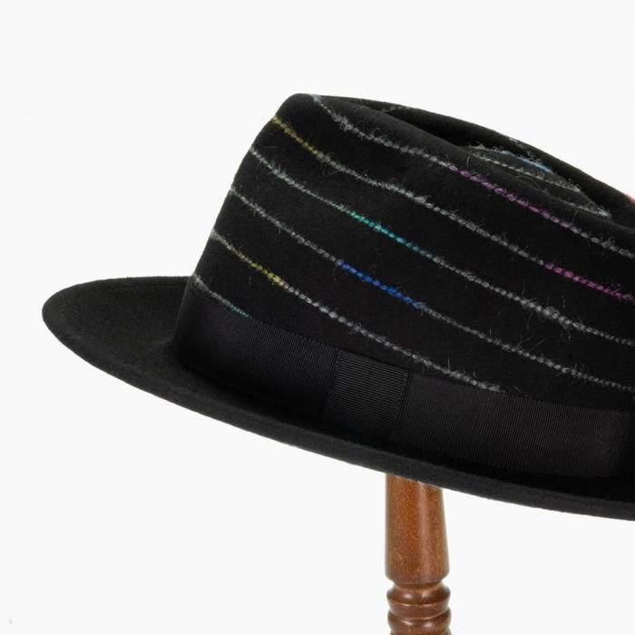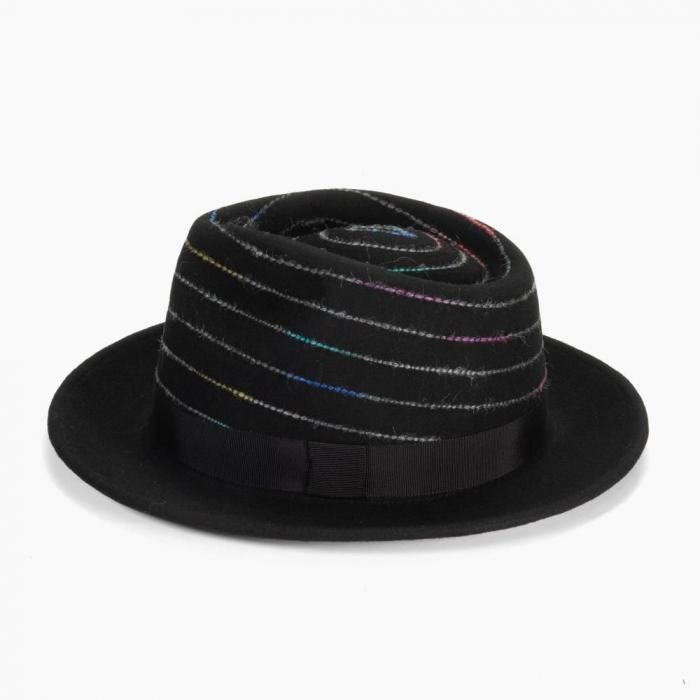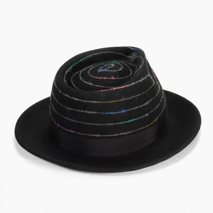 上質なウールフェルトの黒いボディに、レインボーカラーのステッチが映える他にはないデザインが魅力です。