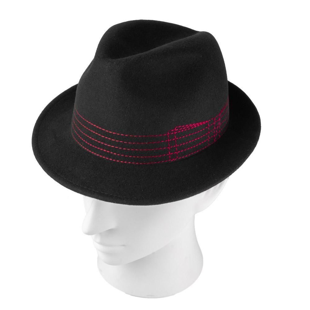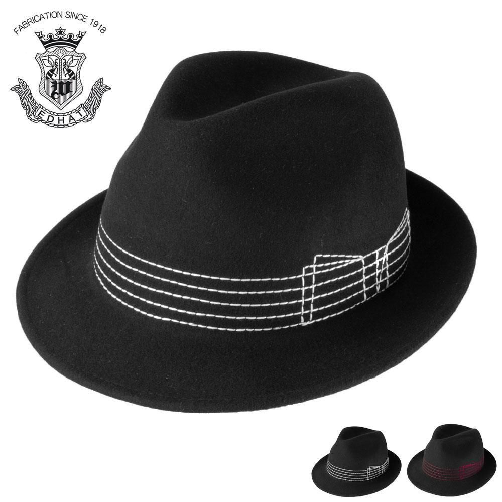 ハット 帽子 秋冬 メンズ レディース フェルト 中折れハット つば 短い ブランド EDHAT エドハット ウール ステッチリボン 中折れ帽 ブラック 黒 おしゃれ サイズ調節 大きいサイズ 小さいサイズ 日本製 ギフト 送料無料