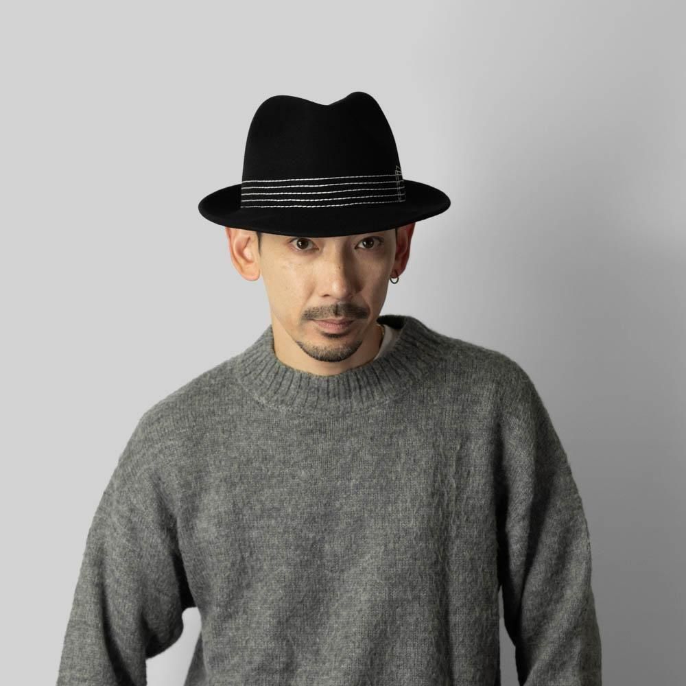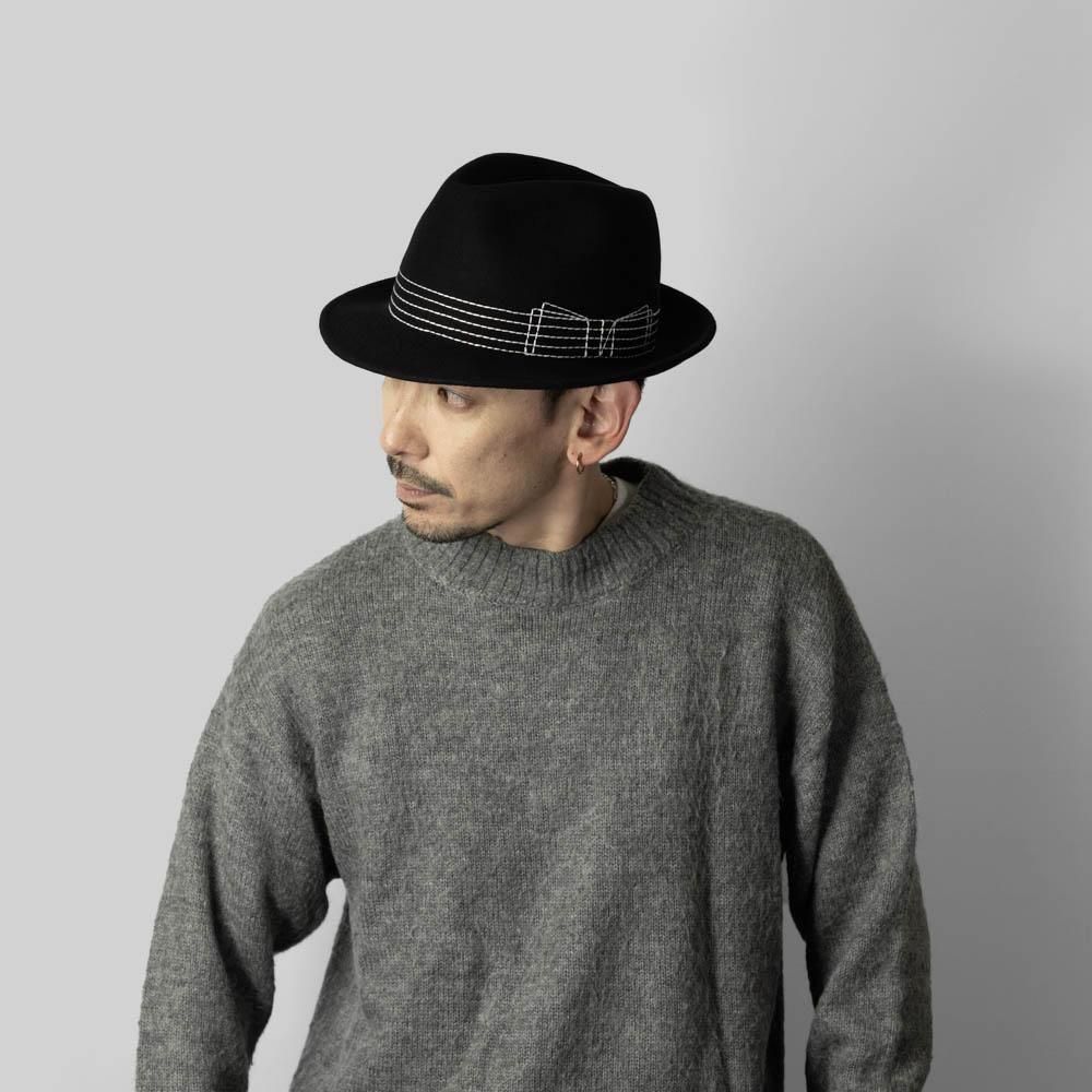 老舗国内帽子ブランドEDHAT(エドハット)のステッチで描かれたリボンがおしゃれな個性を演出する中折れハット。