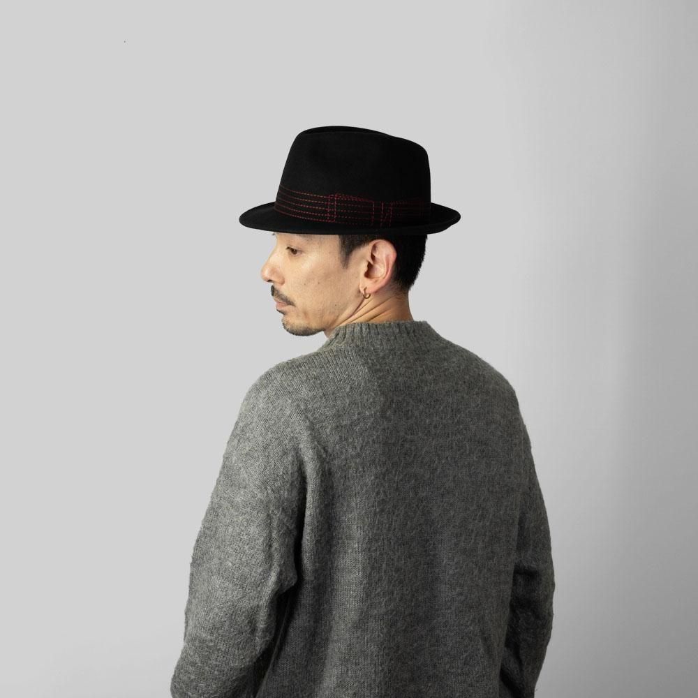 EDHAT(エドハット) ウールフェルト つば短い ステッチリボン 中折れハット