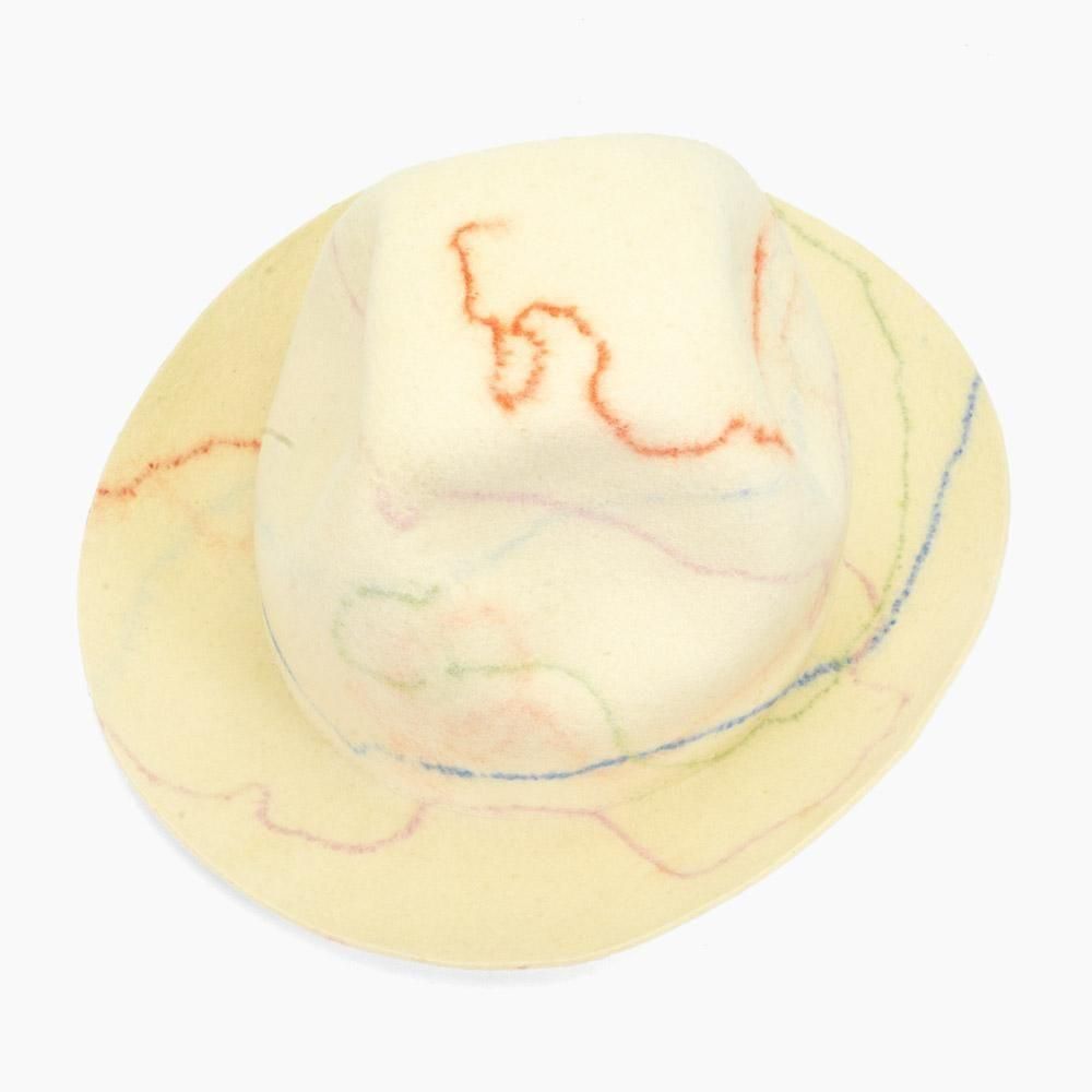 本製品はウールフェルト素材のため、基本的にご自宅での洗濯は推奨しておりません。型崩れや縮みの原因となります。汚れが付着した場合は、専門のクリーニング店にご相談いただくか、硬く絞った布で軽く叩くようにして汚れを落としてください。